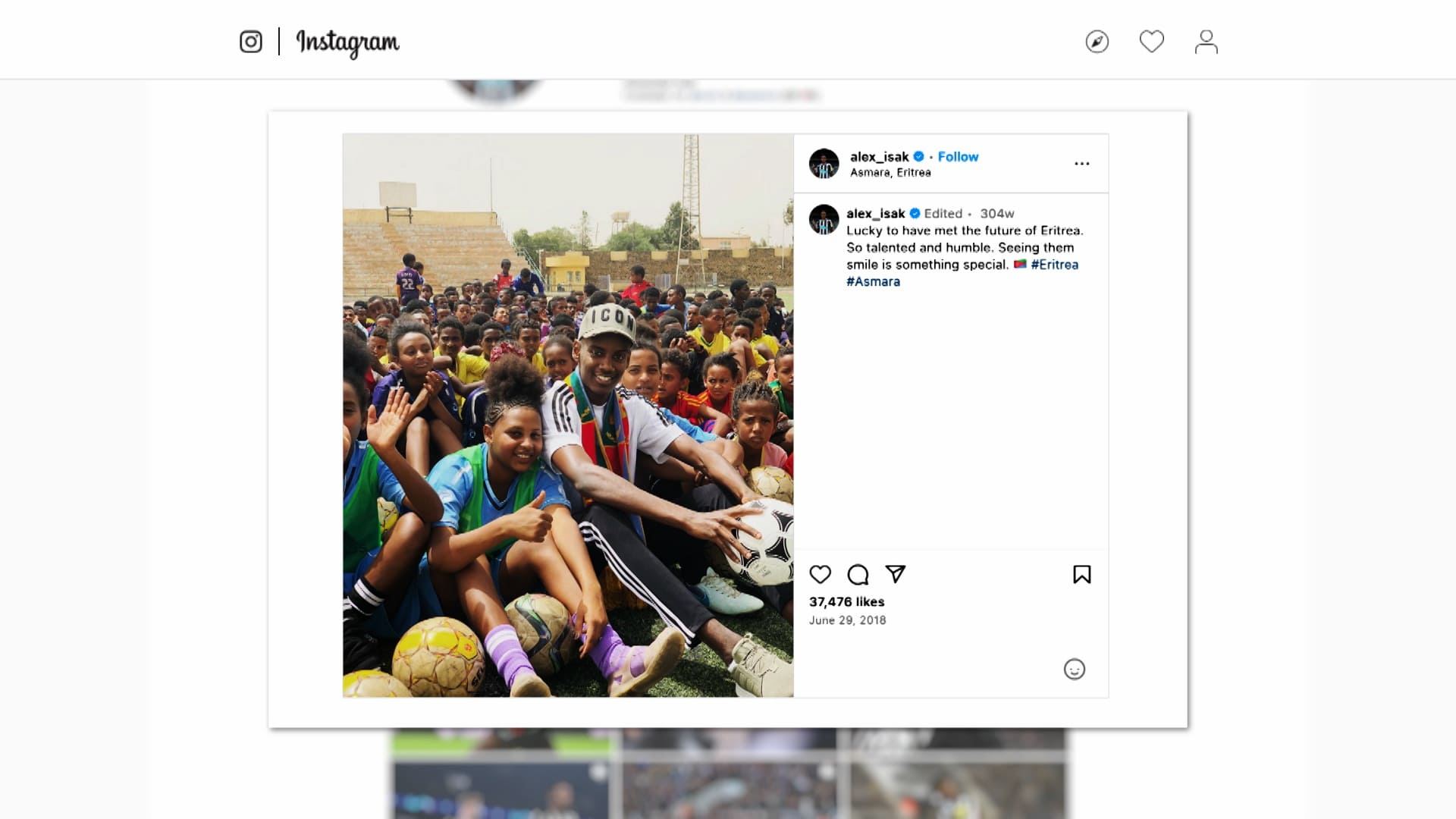 イサク:ええ、家族と一緒に行く時間がありました。素晴らしい訪問で、人々や色々な場所を訪れ、自分の家族が育った場所にいることができました。サッカークラブや若いアスリートたちにも会いました。感動的でしたね。